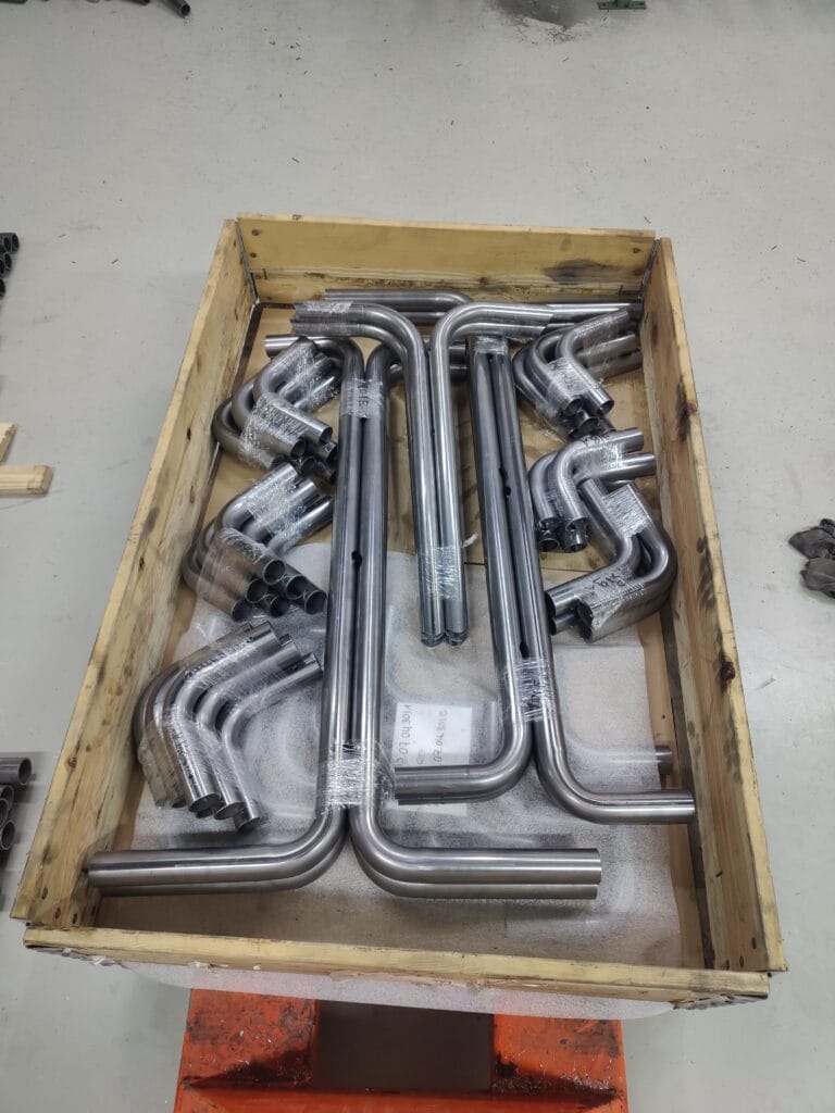 Voor een gerenommeerd Nederlandse projectinrichter hebben we een set gebogen buisdelen voor in de etalage mogen voorzien.