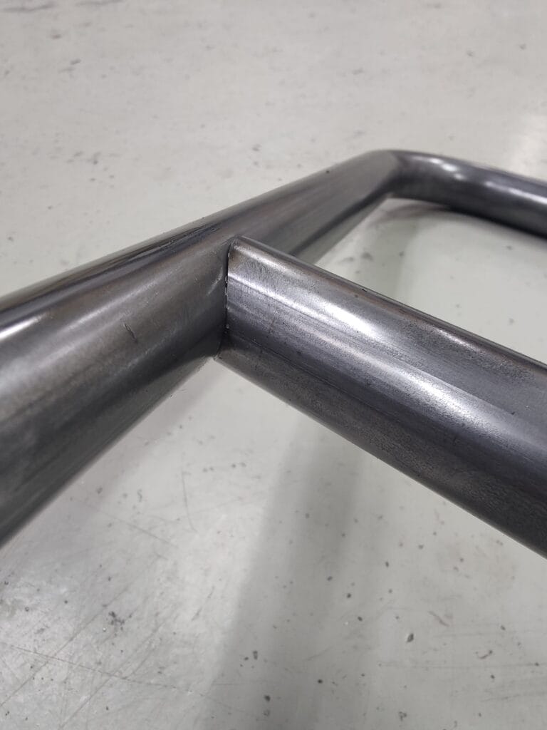 Vooraf is de radius ingesneden op de buizenlaser, en nadien naadloos dichtgebogen.